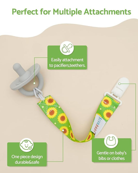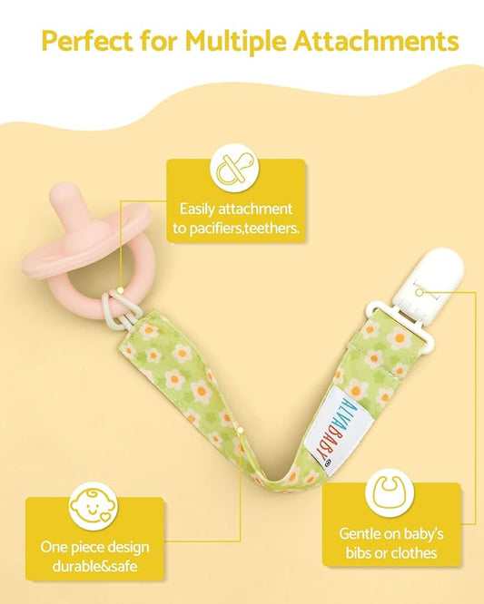 ALVABABY Pacifier Clips 8 Packs Binky Paci Clip Holder Leashes for Newborn Baby Boys Girls Fits Baby Teethers Toys Flower Fluit 8DP14