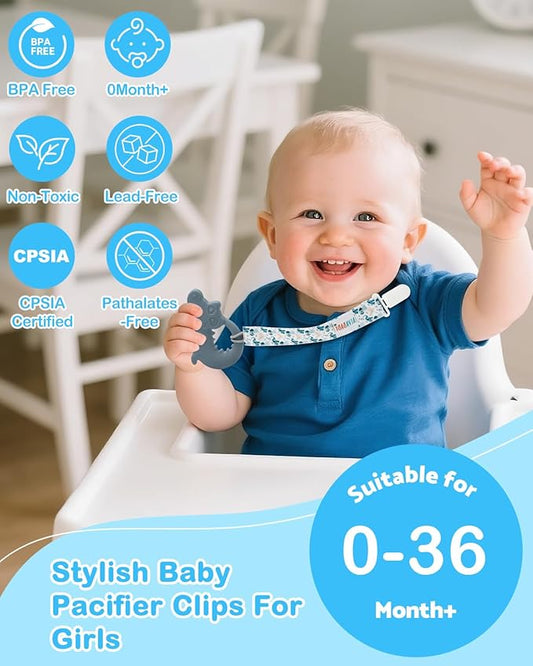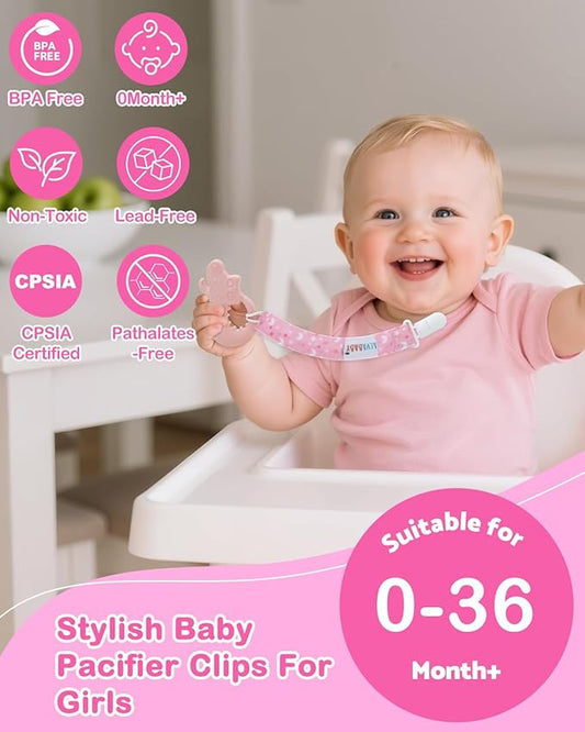 ALVABABY Baby Pacifier Clips for Girls Pacifier Universal Holder Leash Pacifier Clip Binky Holder 8 Pack 8DP05