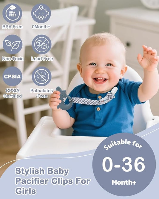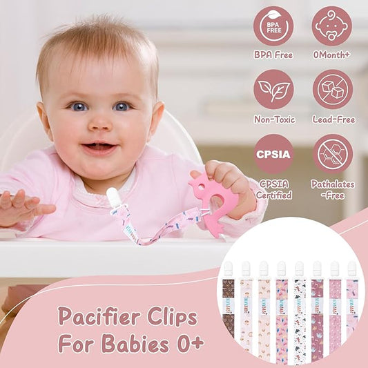 ALVABABY Pacifier Clips 8 Packs Paci Clip Holder Leashes Binky for Neutral Baby Boys and Girls Fits Binkie Styles,Baby Teethers
