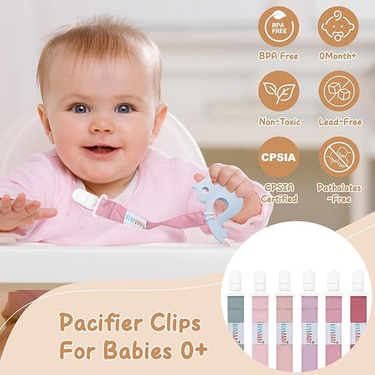 ALVABABY Baby Pacifier Clips for Boys Girls Pacifier Universal Holder Leash Pacifier Clip Binky Holder for Teether Toys Soothie 6 Packs 6DP01