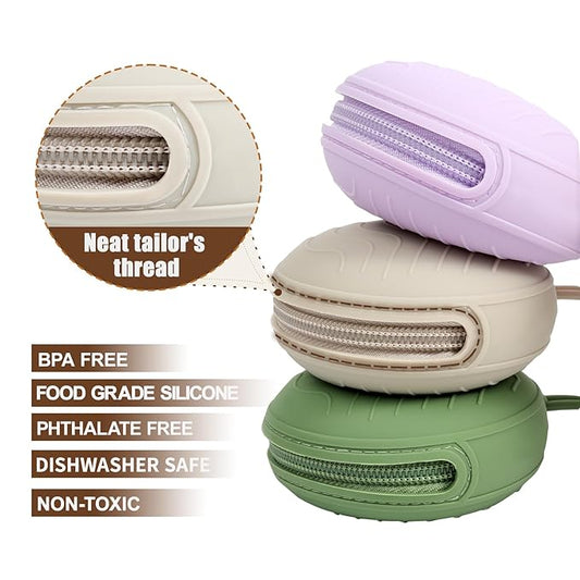3 Pack Silicone Pacifier Holder Case, BPA-Free Cover Pouch for Baby, Portable Storage Container for Diaper Bag Stroller, Travel Outdoor Activities, Easy to Clean (Green, Grey, Purple)