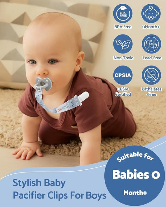 ALVABABY Baby Pacifier Clips for Boys Girls Pacifier Universal Holder Leash Pacifier Clip Binky Holder for Teether Toys Soothie 8 Packs 8DP11