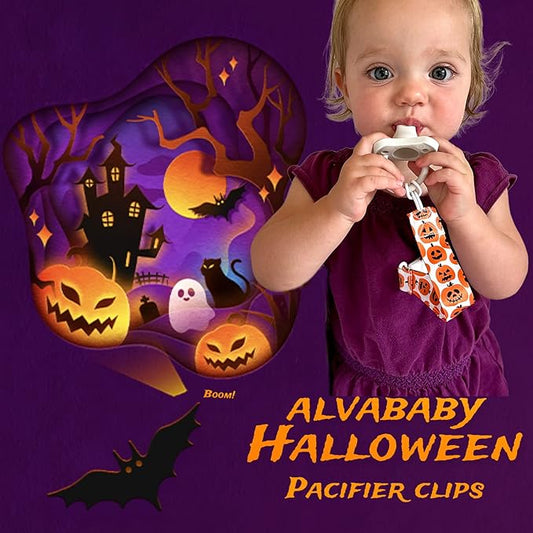 ALVABABY Baby Pacifier Clips for Boys Girls Halloween Pacifier Universal Holder Leash Pacifier Clip Binky Holder for Teether Toys Soothie 6 Pack 6DBP05-1