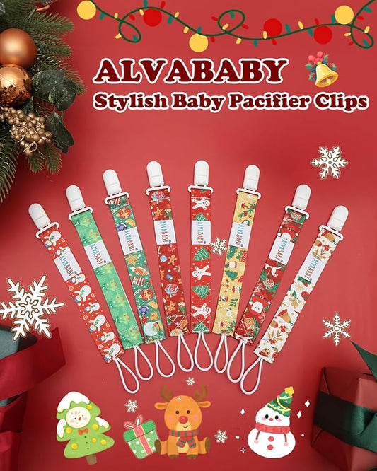 ALVABABY Pacifier Clip 8 Pack Binky Paci Clip Holder Leashes for Newborn Baby Boys Girls Christmas 8DBP03-DA