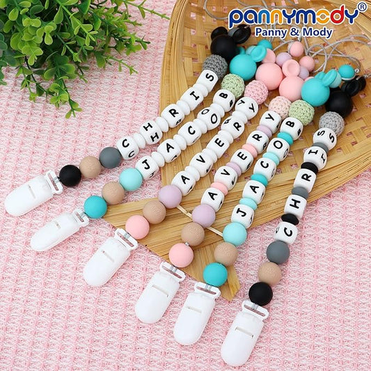 Personalized Pacifier Clip with Name, Customizable Pacifier Clip (2 Pack) (Mouse-Black)