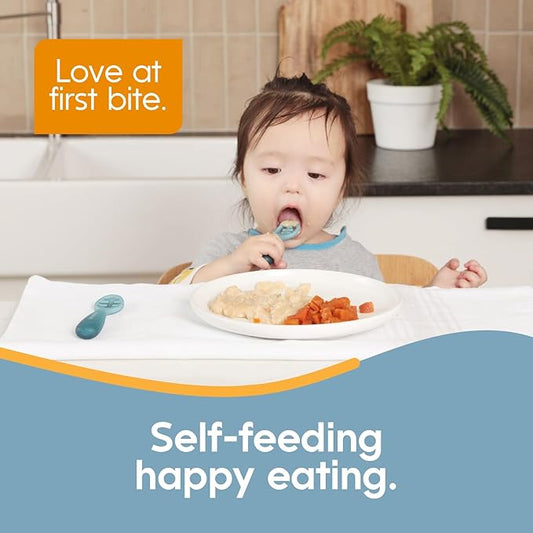 NumNum Baby Spoons Set, Baby Essentials Pre-Spoon GOOtensils for 6+ Months, First Stage Self-Feeding Spoons for Baby Led Weaning (BLW), Silicone Toddler Utensils, BPA-Free, 2 Pack Blue/Orange