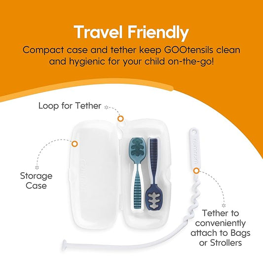 NumNum Baby Spoons Set, Silicone Pre-Spoon GOOtensils for Kids Aged 6+ Months - First Stage, Baby Led Weaning (BLW), Teething Spoon - Travel Case + 2 Spoons, Blue/Navy