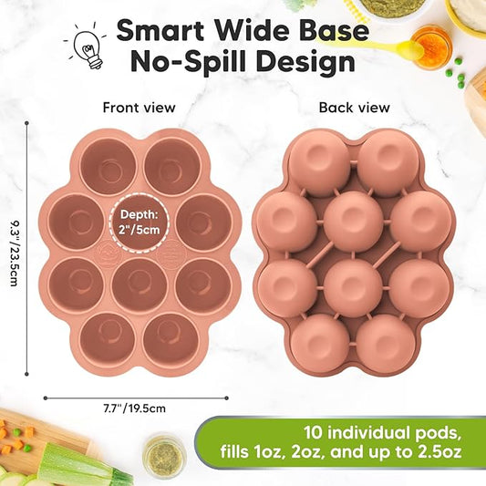 KeaBabies Silicone Food Freezer Trays with Lid, 2oz x 10 Pods Baby Food Storage Containers, Easy Puree Meal Prep, Breast Milk Silicone Freezer Molds, Dishwasher, Microwave Safe,BPA-Free(Chai Latte)