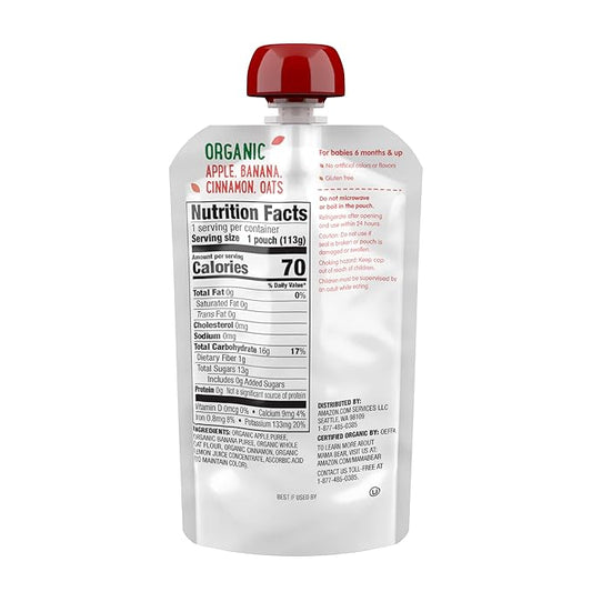 Amazon Brand - Mama Bear Organic Baby Food, Stage 2, Apple, Banana, Cinnamon, Oats, 4 ounce (Pack of 12)