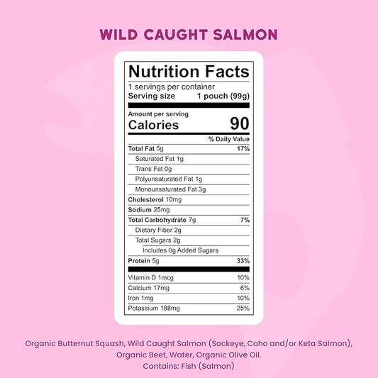 Serenity Kids 6+ Month Salmon Baby Food Pouches - BPA-Free Wild Caught Salmon & Organic Butternut Squash & Beet - No Added Sugar & High Protein - 3.5 Oz, 6 Pack