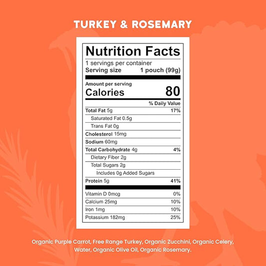 Serenity Kids 6+ Months Baby Food Pouches Puree - Free Range Turkey & Organic Rosemary Blend With Purple Carrot & Zucchini - No Added Sugar & BPA-Free Pouches - 3.5 Oz, 12 Pack