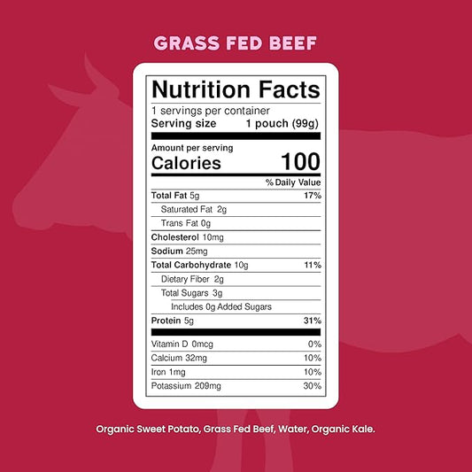 Serenity Kids 6+ Months Baby Food Pouches - Grass Fed Beef Puree with Organic Kale & Sweet Potato - BPA-Free Baby Snacks - 3.5 Oz, 6 Pack