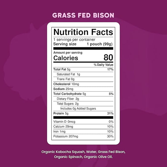 Serenity Kids Baby Food Pouches, Grass Fed Bison with Organic Kabocha Squash & Spinach, For 6+ Months, 3.5 Ounce Pouch (12 Count)