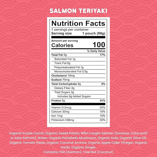 Serenity Kids 6+ Months Salmon Teriyaki Baby Food Puree Pouch - Organic Veggies & Ethically Sourced Salmon - No Added Sugar Baby Snacks - BPA-Free Pouches- 3.5 Oz, 6 Pack