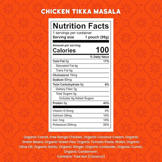 Serenity Kids 6+ Months Chicken Tikka Masala Baby Food Puree Pouches - High Protein Ethically Sourced Chicken & Organic Veggies - BPA-Free Toddler Pouches - 3.5 Oz, 12 Pack