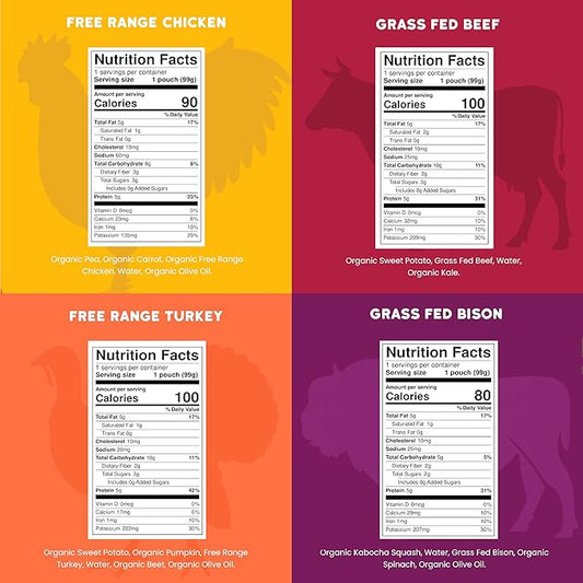 Serenity Kids 6+ Months Meats + Veggies Mixed Baby Food Puree Pouch Variety Pack 18 Count- No Sugary Fruits or Added Sugar - 3.5 Oz BPA & Allergen Free Pouch- Baby Puree Variety Pack - Pouches - Bison