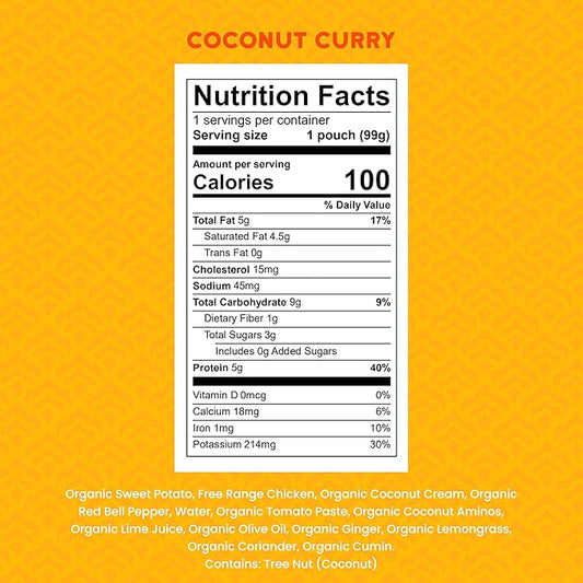 Serenity Kids 6+ Months World Explorers Coconut Curry Chicken Baby Food Pouch - BPA-Free Pouches - Ethically Sourced Meats & Organic Veggies - GMO-Free Savory Blend - 3.5 Oz, 12 Pack