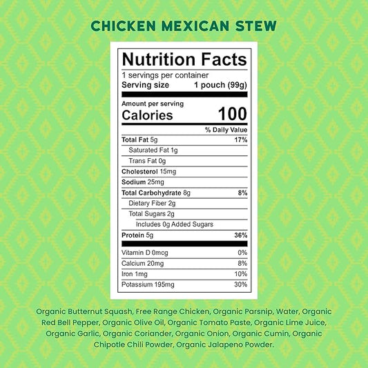 Serenity Kids 6+ Months World Explorers Mexican Chicken Baby Food Pouches - Chicken Mexican Stew - BPA-Free Organic Baby Food Puree with Protein & Veggies - 3.5 Oz, 6 Count