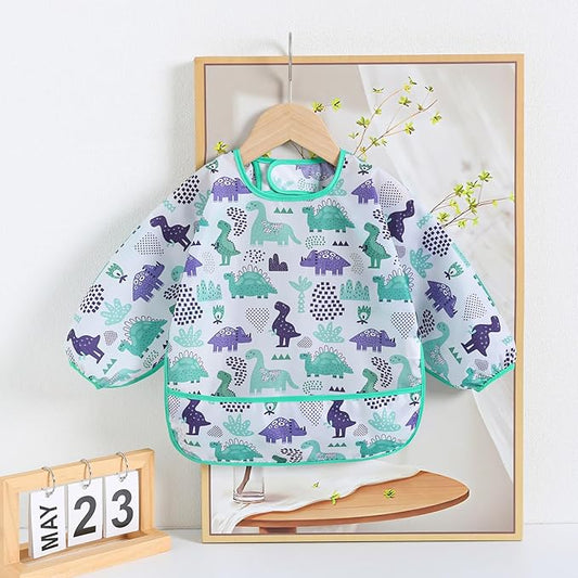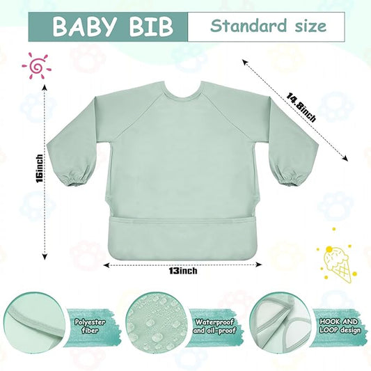 Long Sleeve Baby Bib-Mess Proof Baby Feeding Bibs with Adjustable Design for Babies during Eating or Highchair