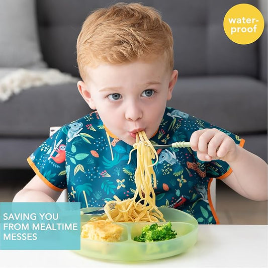 Bubba Bear Baby Bib with Sleeves, Long Sleeve Toddler Feeding Apron Bibs for Eating & Lead Weaning, Mess Proof Full Sleeved