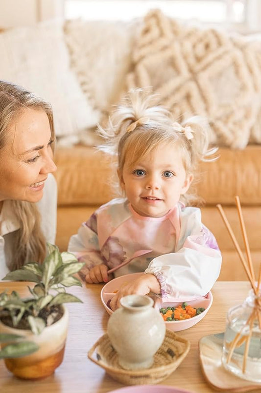 Tiny Twinkle Mess Proof Baby Bib,Waterproof Smock Baby Bib for Eating,Machine Washable Long Sleeve Bib,Baby Led Weaning,Toddler Bib (Cotton Candy, Small 6-24 Months)