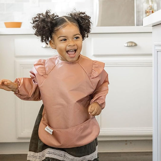 Tiny Twinkle Mess Proof Baby Bib,Waterproof Smock Baby Bib for Eating,Machine Washable Long Sleeve Bib,Baby Led Weaning,Toddler Bib Gingerbread, Small 6-24 Months