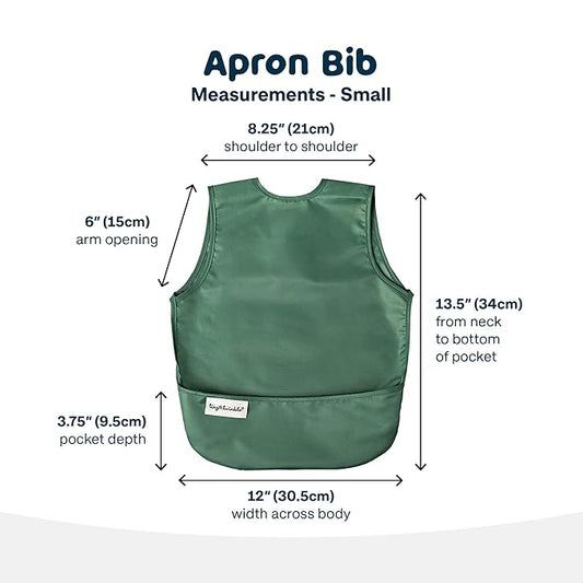 Tiny Twinkle Mess Proof Baby Bib - Waterproof & Lightweight Baby-Led Weaning Apron | 100% Recycled Polyester, Easy Clean & Machine Washable (Sage Green, Small 6-24 Months)