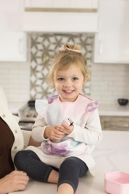 Tiny Twinkle Mess-Proof Baby Bib - Waterproof Bib for Baby Girl - Machine Washable - Adjustable Closure - PVC, BPA, & Phthalate Free - Great for Travel - Baby Food Bibs (3 Pack, Floral Pop)