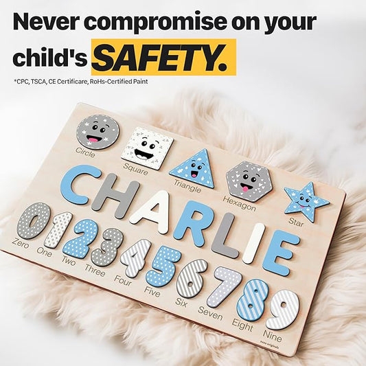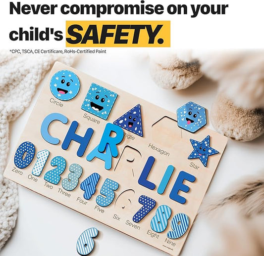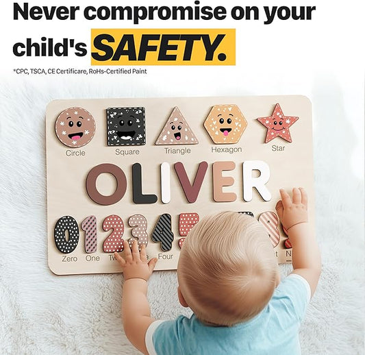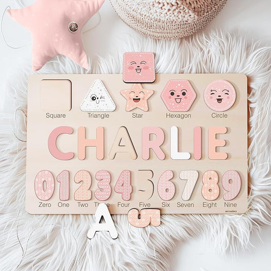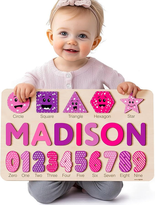 Personalized Name Puzzle with Numbers and Shapes, Name Puzzle for Kids, Custom Birthday Gift for Kids, Christmas Gifts for Toddlers, Unique New Baby Gift, 1 Year Old Boy and Girl Toys, Wood Toy