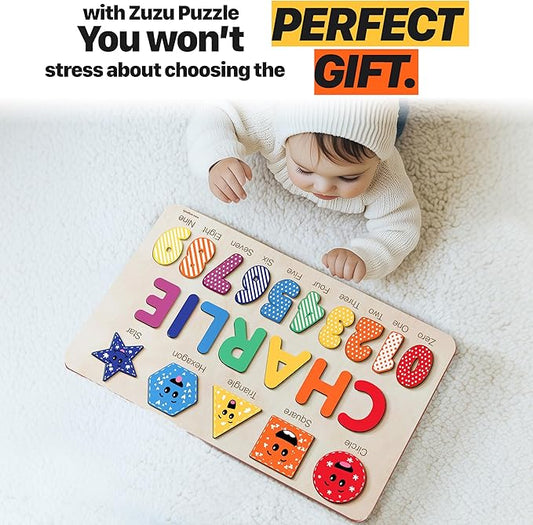 Personalized Name Puzzle for Babies and Kids - Zuzu Puzzle Wooden Toy, Educational Toddler Gift, Baby Shower or Newborn Gift (0-36 Months)-TSCA,CPC Certified