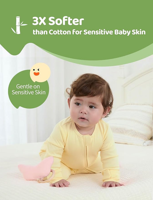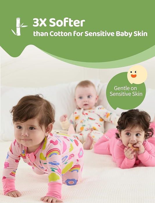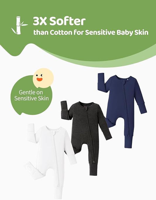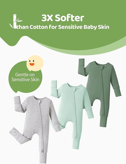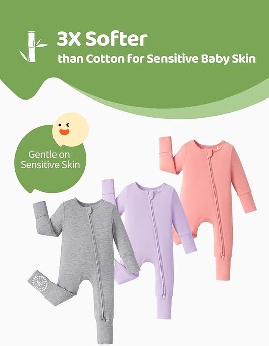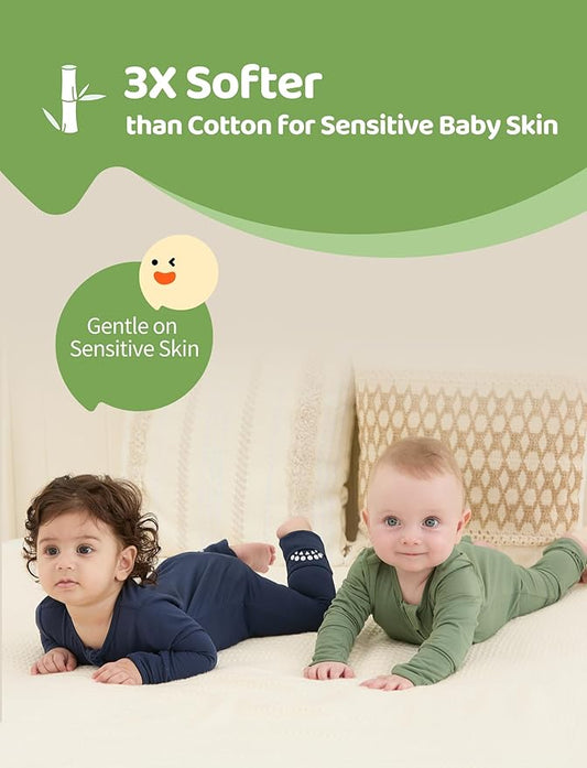 PATPAT Baby Footies Boys Girls - Bamboo Viscose - Zipper & Non-Slip Soles Romper Mitten - Footed & Footless Infant Clothes