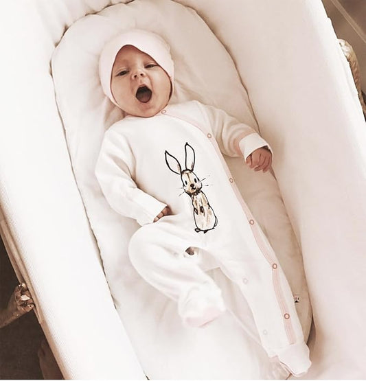 Babysoy Janey Baby Footed Pajamas - Organic Kimono Sleeper (0-3 Months, Rabbit/Peony)