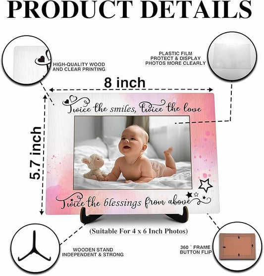 Twins Baby Pictures Frame, Watercolor Baby Photo Frame with Stand, Twins Gifts for Babies, New Baby Gifts For New Mom Dad, Home Living Room Bedroom Decoration -a73