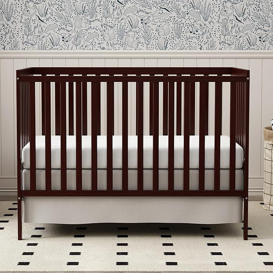 Baby Crib 5-in-1 Convertible, Wooden Nursery Cribs Converts to Toddler Bed, Daybed and Full Size Bed, 3 Adjustable Base, Non-Toxic Finish (Espresso)
