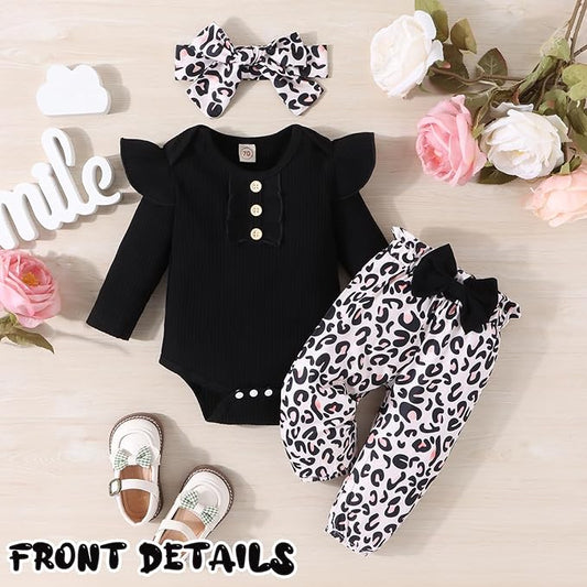 Baby Girl Clothes Newborn Infant Outfits Ruffle Romper+ Floral Pants + Cute Headband Sets for Girls