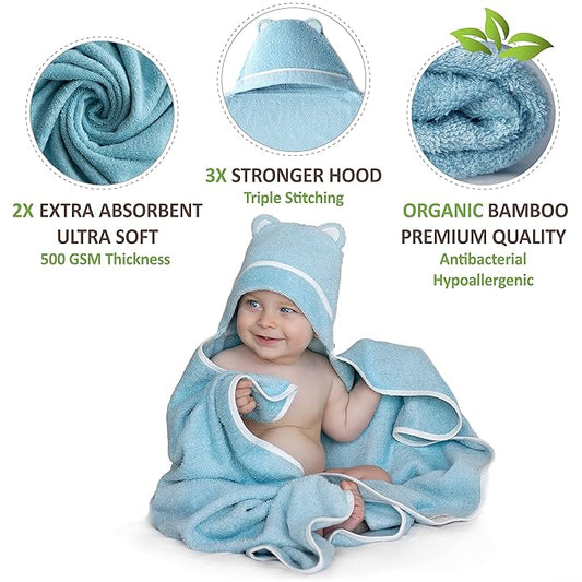 Premium Baby Bath Towel - Rayon Made from Bamboo Hooded Baby Towels - Newborn Baby Towel with Hood - Large Hooded Towel for Newborn Infant Boy Girl (Blue)