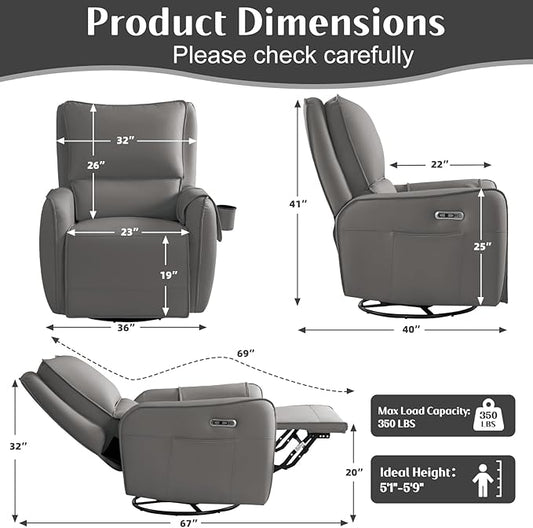 Electric Glider,Power Recliner, Reclining Sofa Chair with USB Ports,Swivel Glider Recliner Chair (Grey)