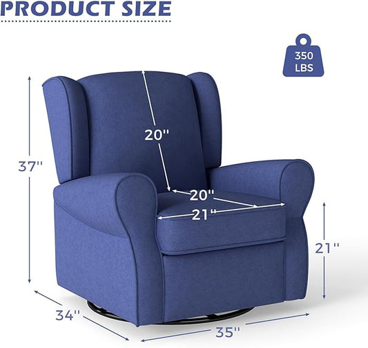 Swivel Rocker Recliner Chair, Nursery Glider Chair, Nursery Rocking Chairs, Manual Reclining Chair, Blue