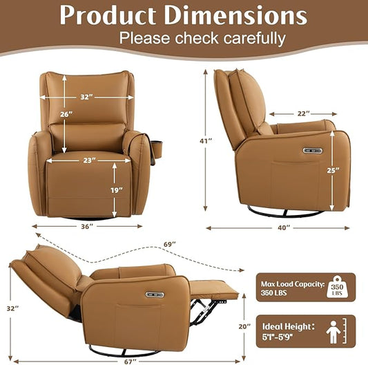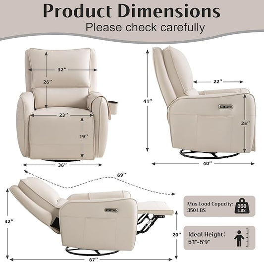 Electric Glider,Power Recliner, Reclining Sofa Chair with USB Ports,Swivel Glider Recliner Chair (Beige)