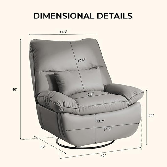 Leather Recliner Chair, 360° Swivel Rocker for Adults Manual Rocking Reclining Chair with Adjustable Backrest Footrest for Living Room Bedroom Home Theater Seating