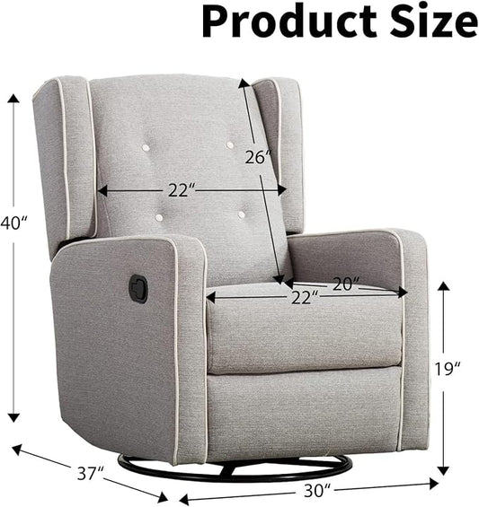 Swivel Rocker Recliner Chair, Nursery Glider Chair, Nursery Rocking Chairs, Manual Reclining Chair, Grey