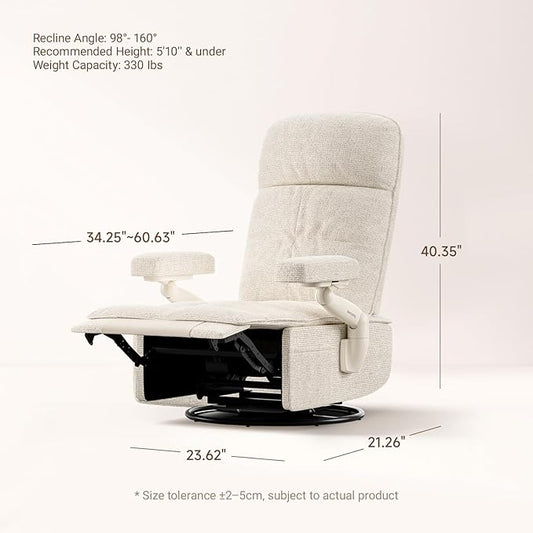 Nursery Swivel Glider Recliner Chair with Adjustable Armrests & Headrest, Rocking Chair Nursery with Removable Cover for Breastfeeding, FSC & Oeko-TEX Certified, Beige