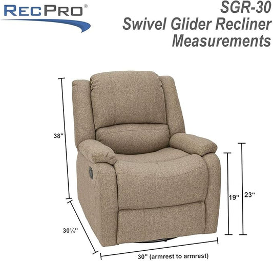 RecPro Charles Collection | 30" Swivel Glider RV Recliner | RV Living Room (Slideout) Chair | RV Furniture | Glider Chair | Oatmeal or Fossil | Cloth (1 Pack, Fossil)