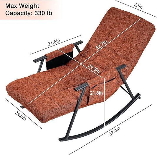 Kiztir Rocking Chair Nursery, High Backrest Teddy Glider Rocker Upholstered Rocker Recliner Modern Rocking Accent Chairs for Bedroom, Living Room, Offices (Brown)