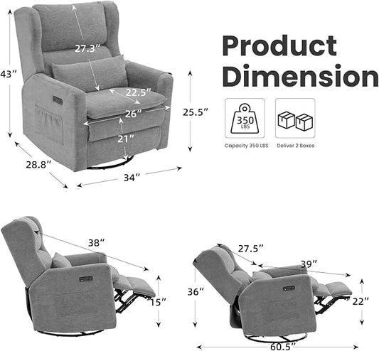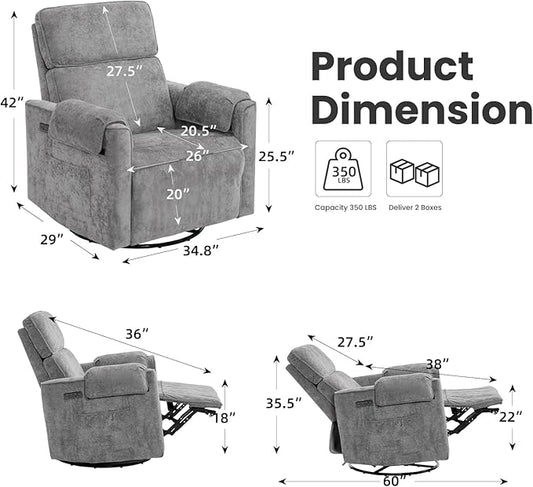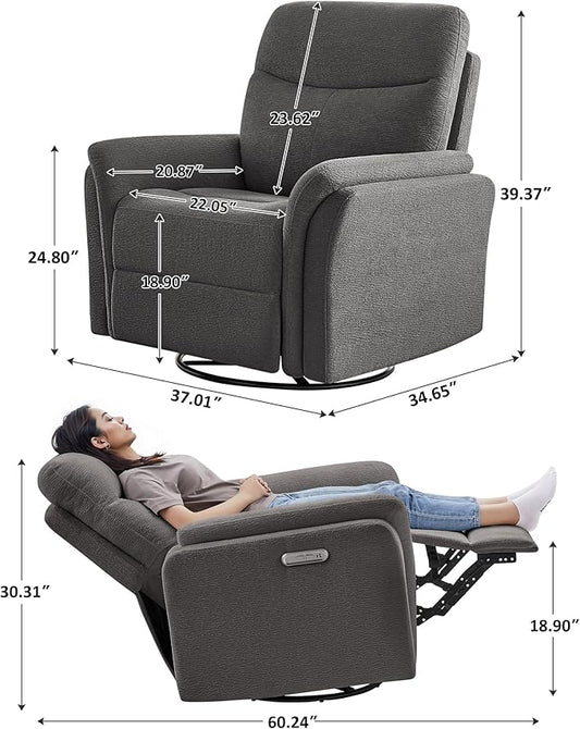 Power Recliner Chair Swivel Glider, Electric Rocking Recliner Chairs with USB and Type-C Ports, Nursery Chair Recliner for Office, Living Room, Bedroom(Dark Gray)