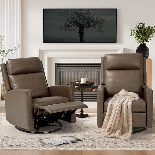 COLAMY Recliner Chair, PU Leather 360° Swivel Rocker Recliner, Nursery Glider Recliner with Ergonomic High Backrest and Upholstered Deep Seat for Living Room, Bedroom, Color Brown