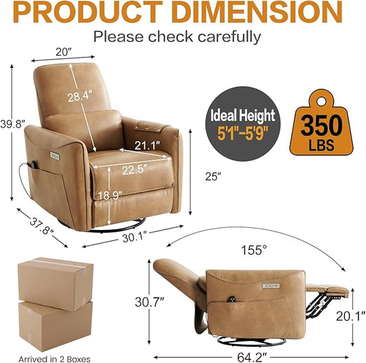 Power Recliner Chair Swivel Glider, Electric Rocking Recliner Chairs with USB and Type-C Ports, Nursery Chair Recliner for Living Room, Bedroom, Apartment(Light Brown)
