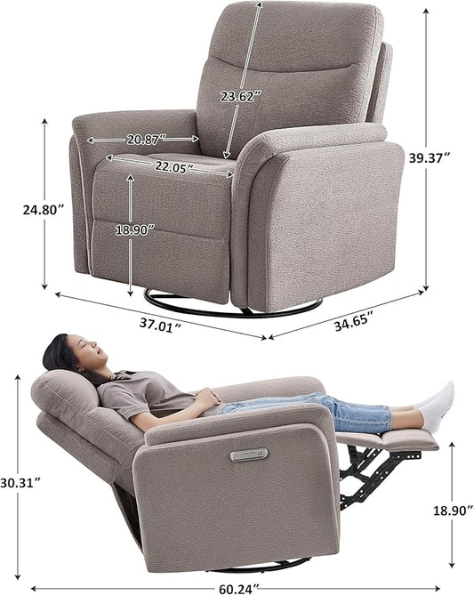 CHITA Electronic Power Recliner Chair Swivel Glider, FSC Certified Modern Nursery Rocking Chair with USB and Type-C Ports, Light Grey