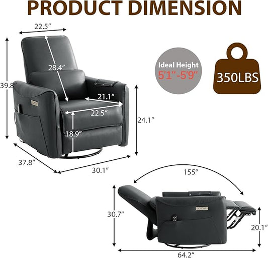Swivel Glider Rocking Recliner, Power Recliner Chairs with Massage & Lumbar Support, Upholstered Faux Leather Reclining Sofa Chair for Living Room & Nursery (Darkgrey)