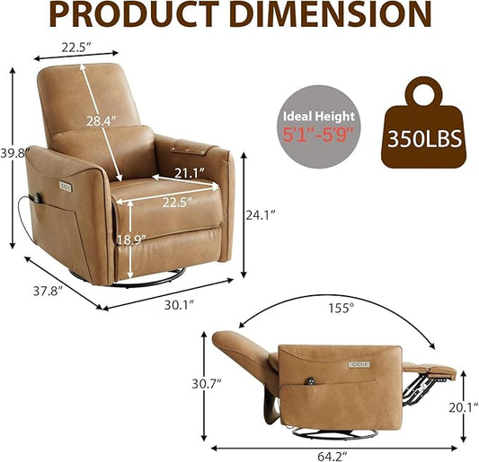 Swivel Glider Rocking Recliner, Power Recliner Chairs with Massage & Lumbar Support, Upholstered Faux Leather Reclining Sofa Chair for Living Room & Nursery (Brown)
